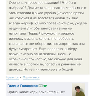 Я Наталья и это не первый курс, который я прохожу у Галы. Но с каждым разом я набираюсь всё больше и больше вязальных сил 😄😅. Мне очень откликаются все идеи, которые Гала высказывает.