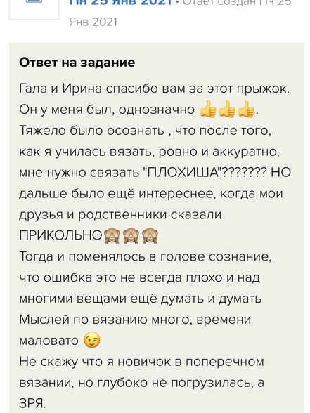 То есть, сразу после оплаты вы не ждете, пока придет дата старта интенсива. Вы уже начинаете творческое вязание.